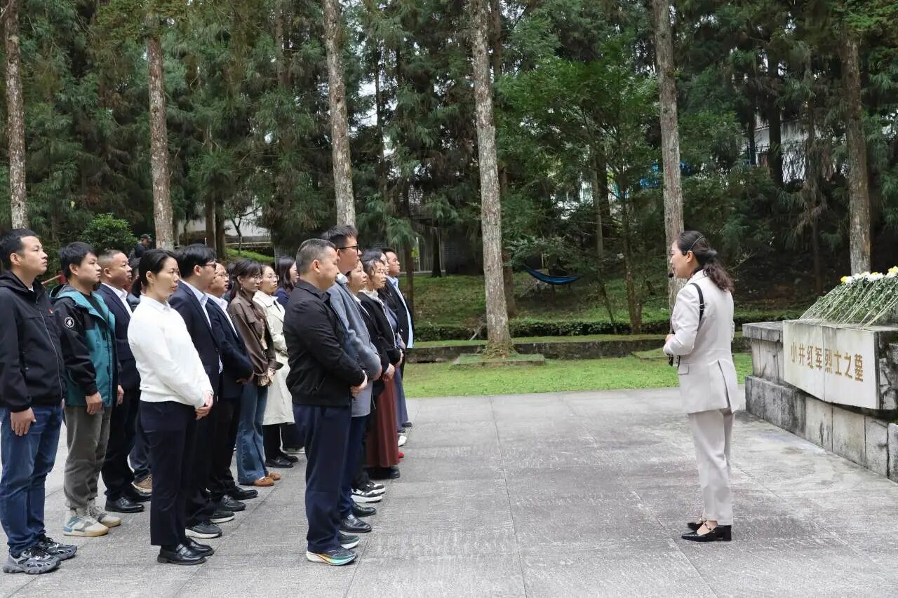 首站黃洋界,昔日戰(zhàn)壕依舊,“黃洋界上炮聲隆”的壯烈猶在耳畔。全體黨員聆聽以少勝多的戰(zhàn)斗傳奇,重溫那段硝煙彌漫的崢嶸歲月,感受紅軍依靠群眾、敢于斗爭(zhēng)的精神力量。