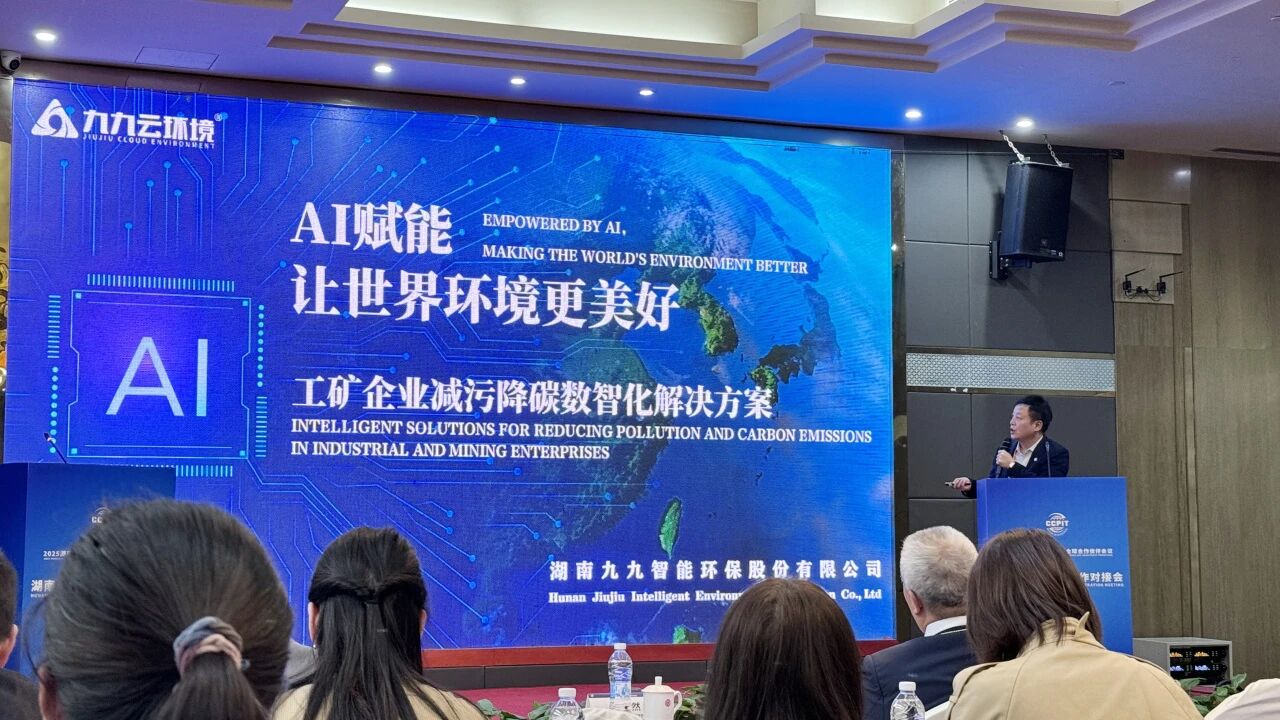 在湖南-美國(guó)經(jīng)貿(mào)合作對(duì)接會(huì)上,九九智能環(huán)保董事長(zhǎng)劉黎明分享了公司在AI賦能綠色轉(zhuǎn)型方面的創(chuàng)新成果與實(shí)踐經(jīng)驗(yàn)。作為國(guó)家級(jí)專精特新重點(diǎn)“小巨人”企業(yè),九九智能環(huán)保始終致力于以“AI+節(jié)能減污降碳”為核心,推動(dòng)工業(yè)環(huán)保與能碳管理智能化。